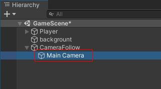 CameraFollow 오브젝트의 자식으로 Main Camera를 옮겨다 놓습니다