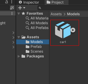 car1 FBX 파일을 다운로드하여 유니티 엔진의 Project Assets의 Models 폴더를 만들고 car1 파일을 저장합니다