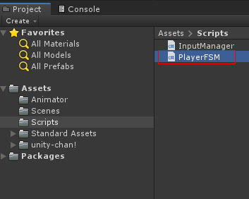 Scrips 폴더 안에 PlayerFSM 스크립트를 만듭니다