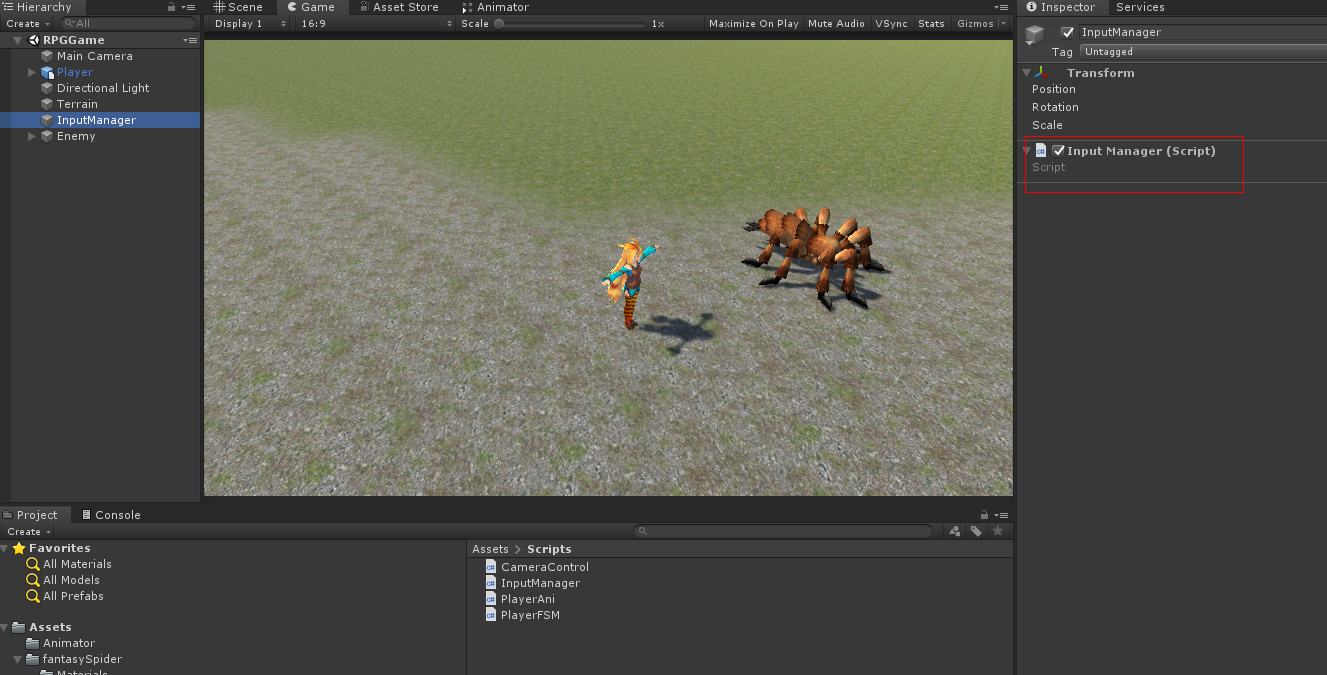 InputManager 오브젝트를 선택하고 InputManager 스크립트를 수정합니다