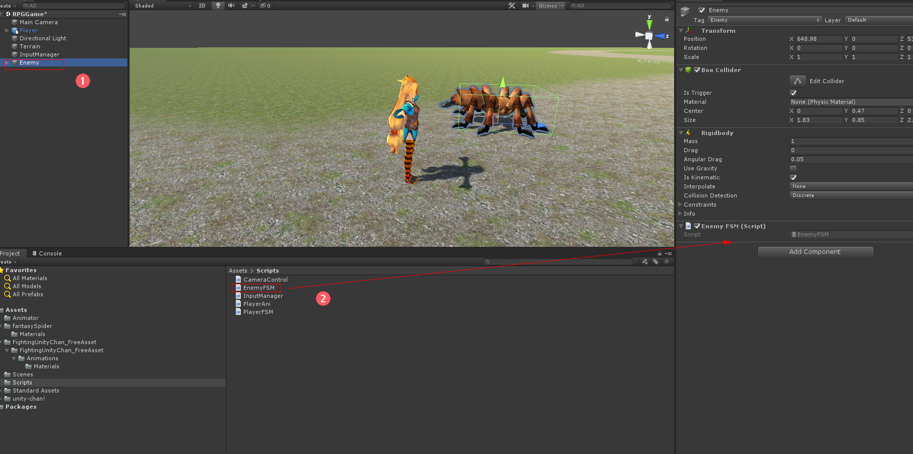먼저 EnemyFSM 스크립트를 만들고 Enemy 오브젝트에 붙힘니다.