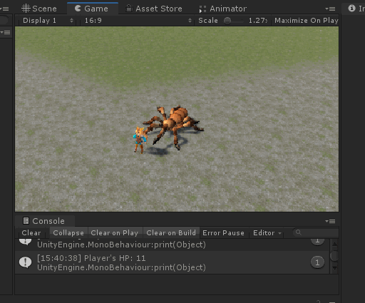게임을 실행시키고 몬스터가 플레이어를 공격하면 플레이어의 HP 가 줄고 0이되면 사망 처리 되는 것을 확인 한다