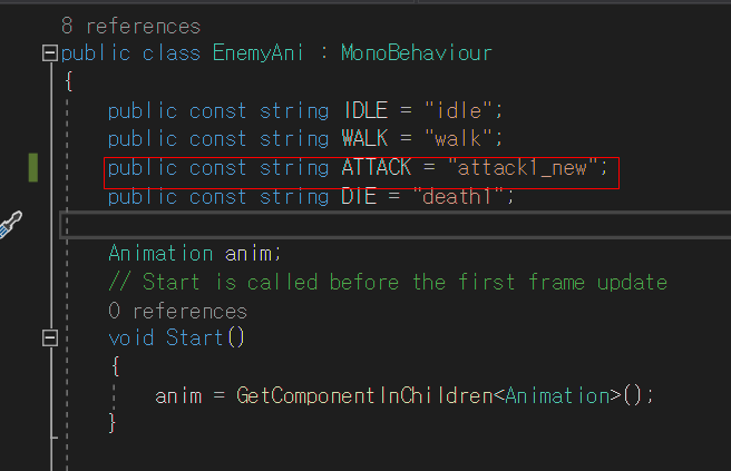 그리고 EnemyAni 스크립트를 선택하여 수정합니다