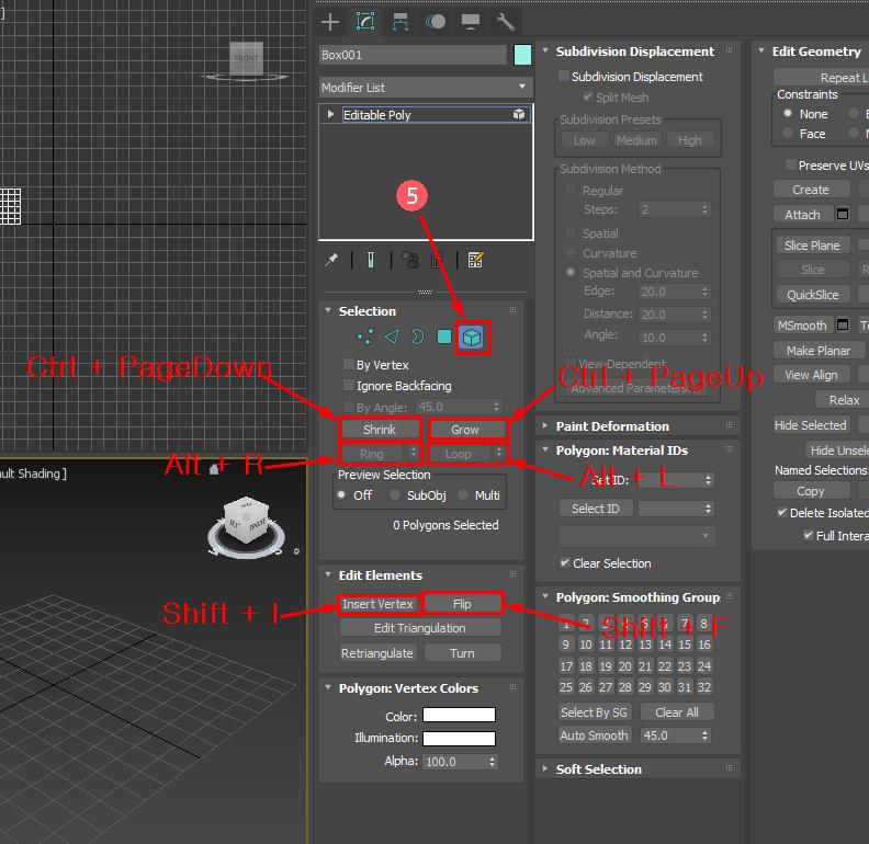 먼저 오브젝트의 Convert to Editable Poly를 적용한 단축키입니다