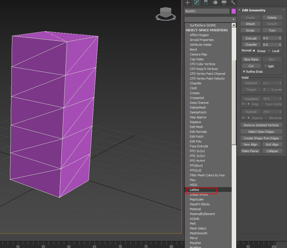 Editable Mesh 를 선택하는 경우는 에지가 사선으로 향하게 하기 위해서입니다