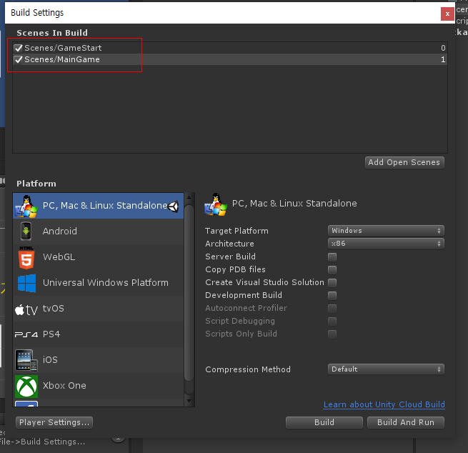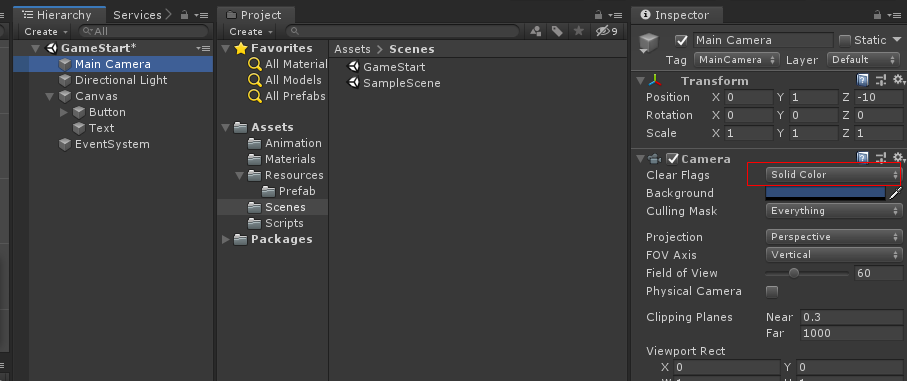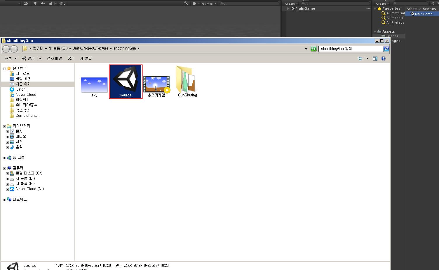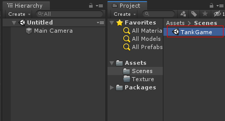 유니티 프로젝트 파일을 만들고 Scenes 파일을 열여 씬 이름을 TankGame으로 바꿉니다
