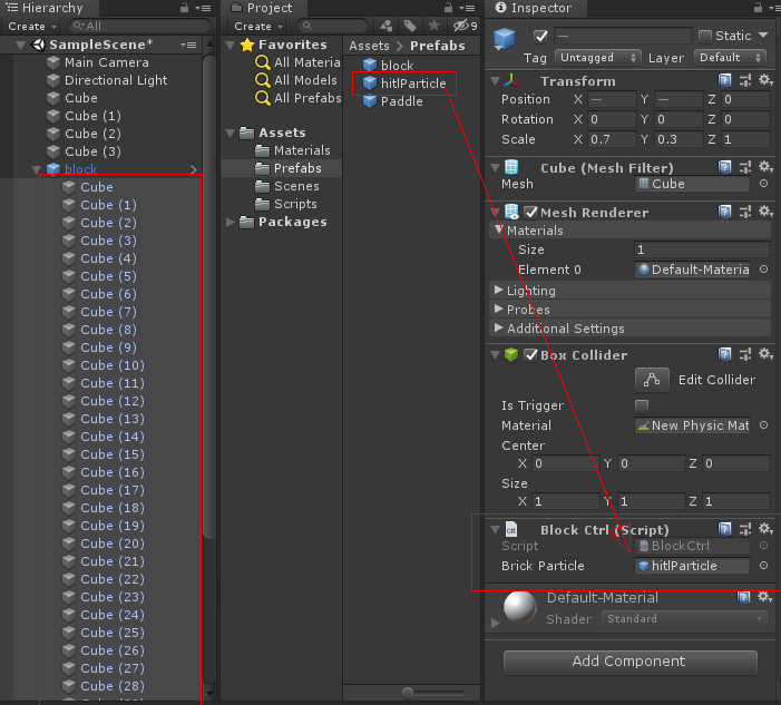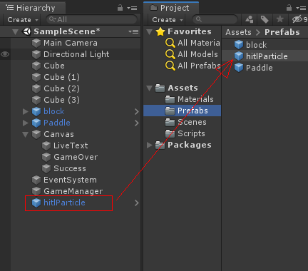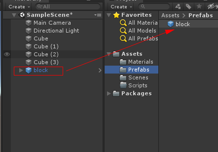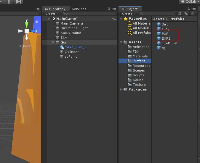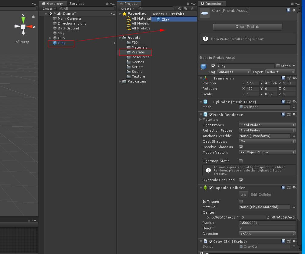 하이 라키뷰에 있는 꽥 오브젝트를 Prefabs 폴더에 드래그 하여 프리팹을 만듬니다