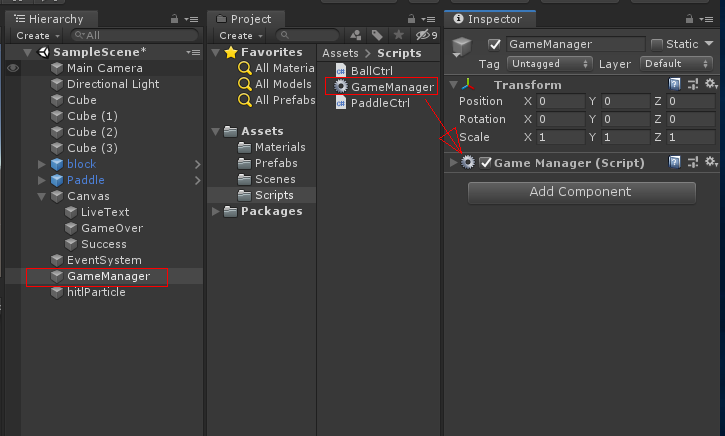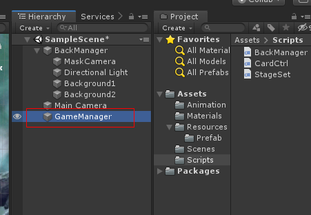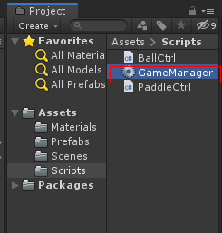 Scripts 폴더에 GameManager 를 만들고 스크립트를 작성합니다