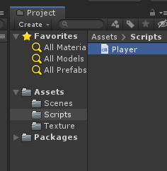 Scripts 폴더를 만들고 Player 스크립트를 생성하여 작성합니다